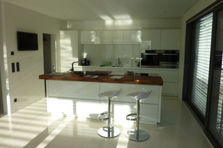 Wohnfläche- und Nutzfläche 210 m² auf zwei Vollgeschossen. Entwurf und Ausführung durch hausinterne Architekten.